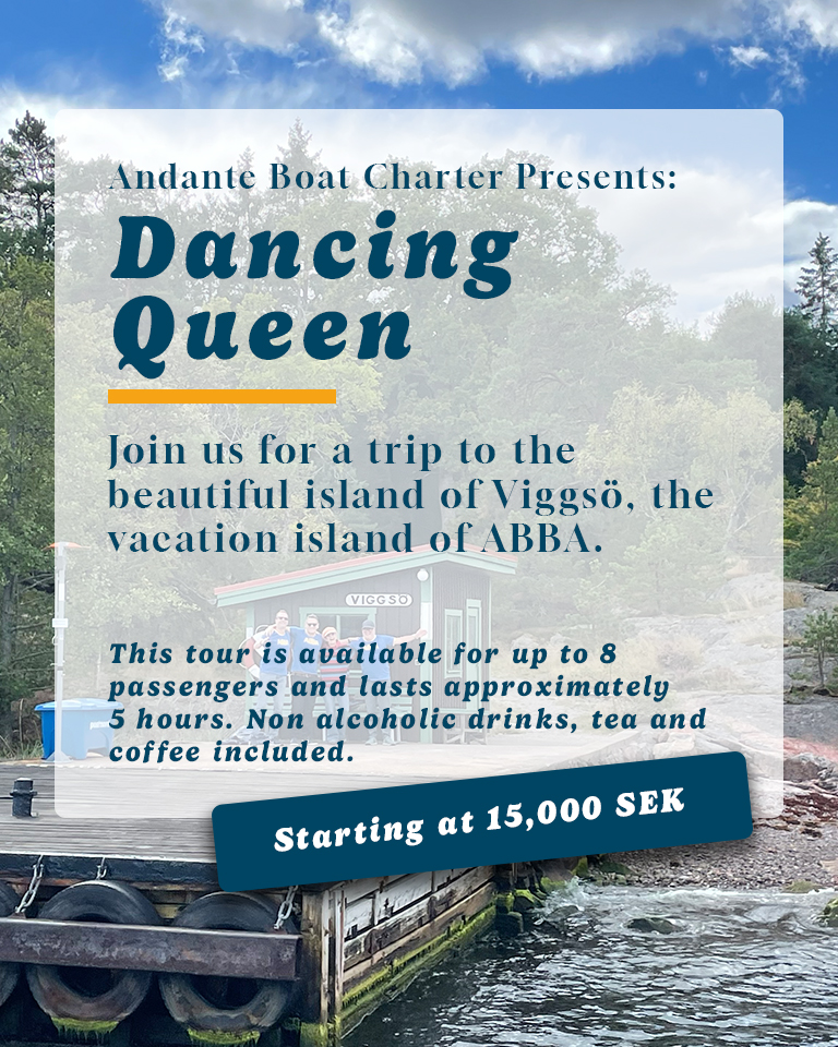 Join us for a trip to the beautiful island of Viggsö where we stop for approximately 1 hour. Viggsö is the vacation island of ABBA. This is where some of their most famous songs and hits were written and composed.