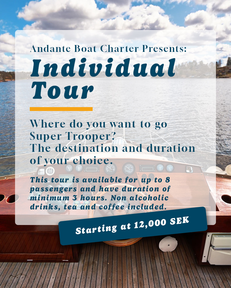 A relaxed tour through Stockholm’s city center? Enjoy a glass of wine and delicacies or have dinner on the boat? Maybe a trip to Fjäderholmarna, the closest island in the Stockholm archipelago? You call the shots.